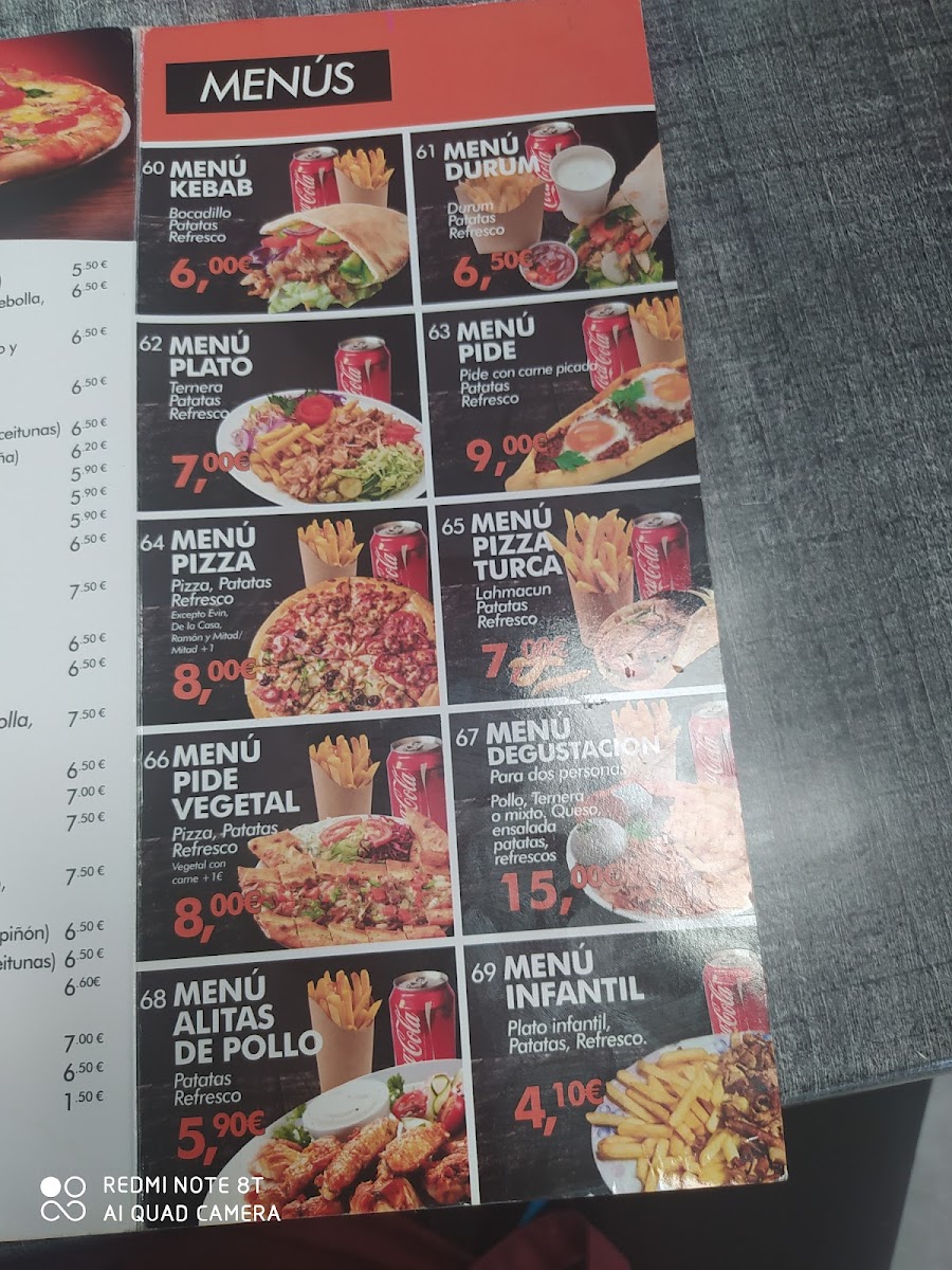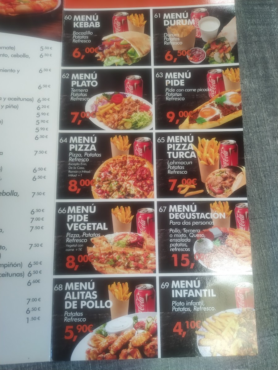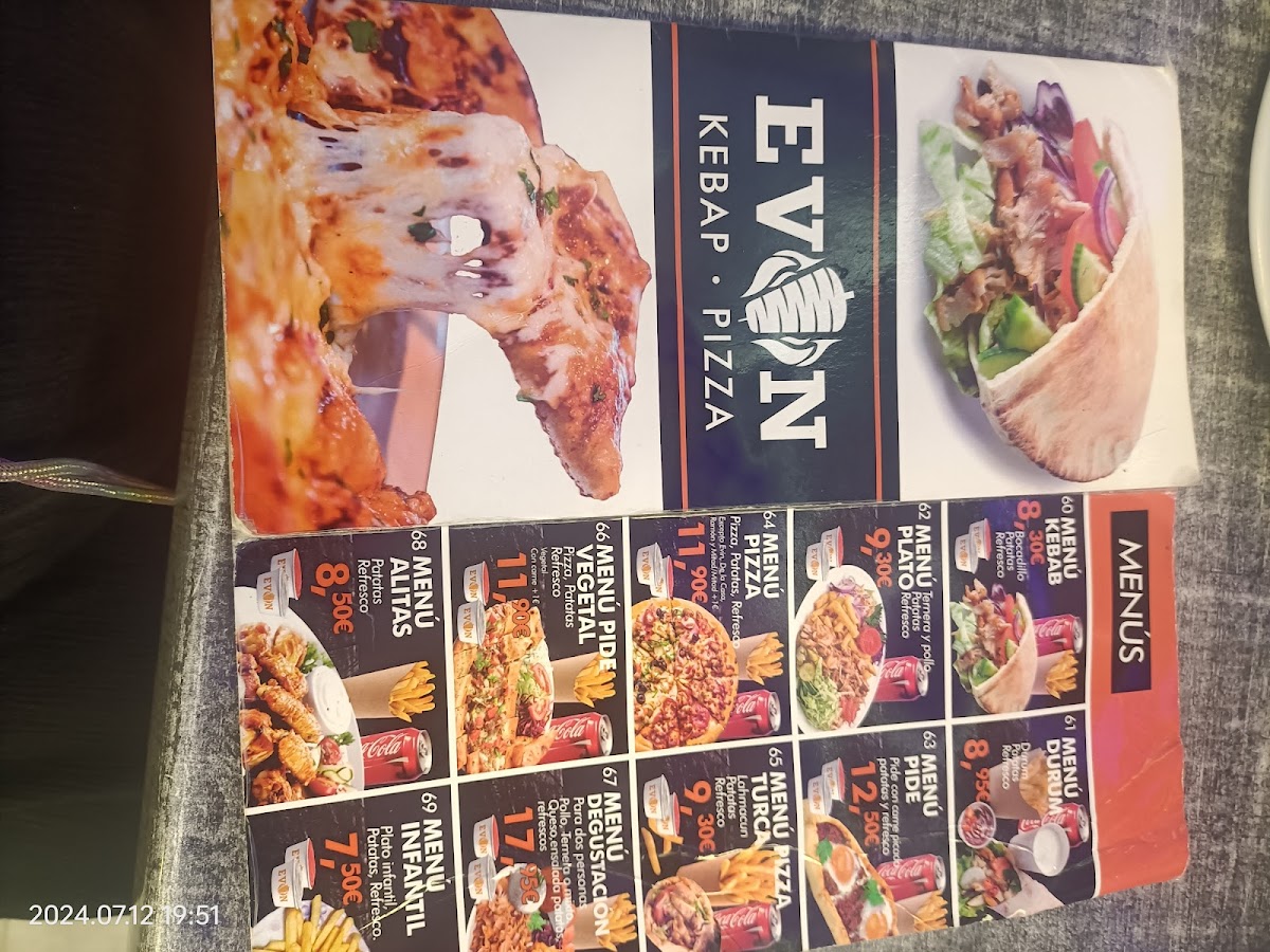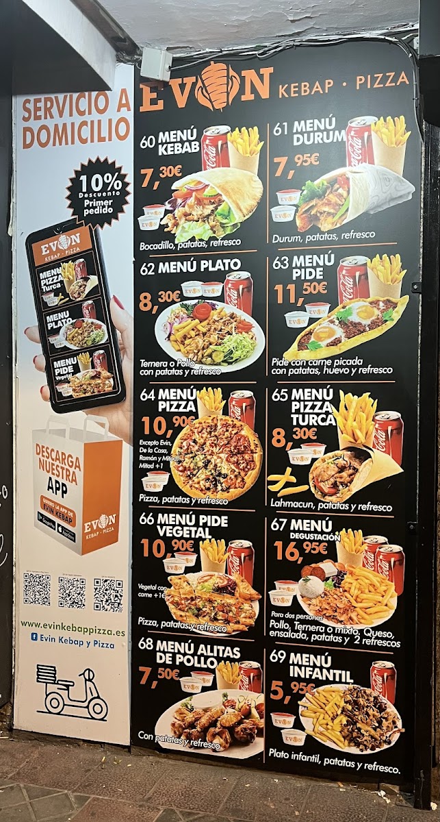 Complement your meal with a refreshing drink, such as a classic Coca-Cola or a glass of Rioja wine, all reasonably priced. Evin Kebap y Pizza offers both indoor and outdoor seating, catering to families and friends looking for a lively atmosphere.
