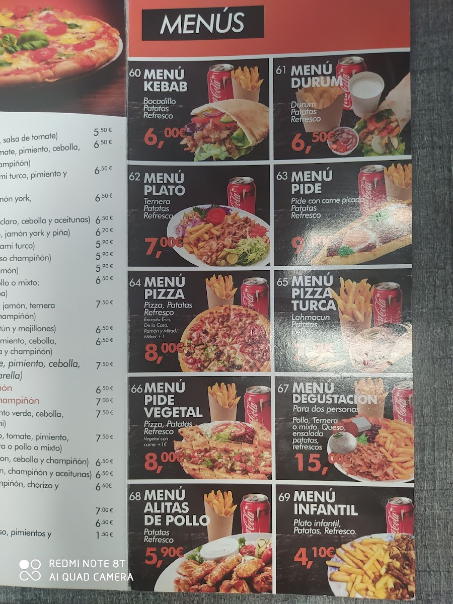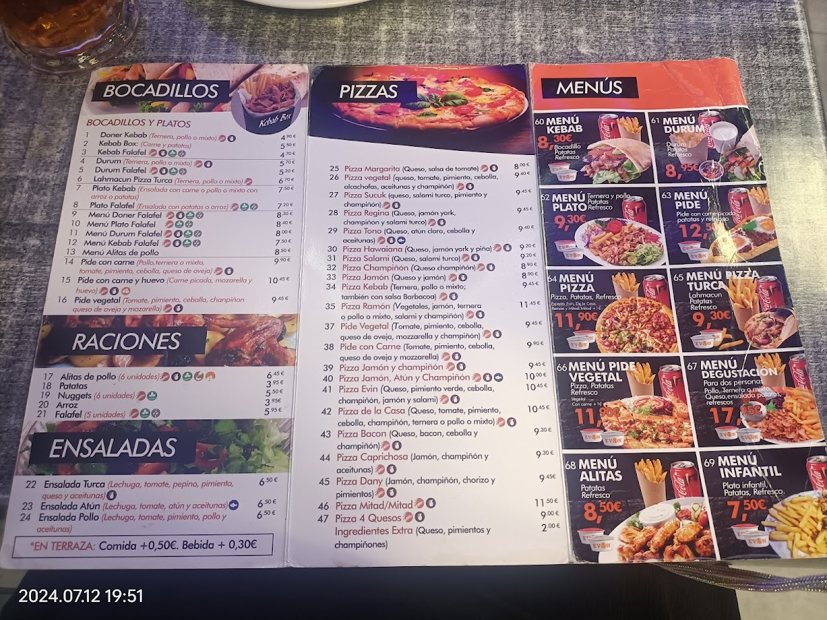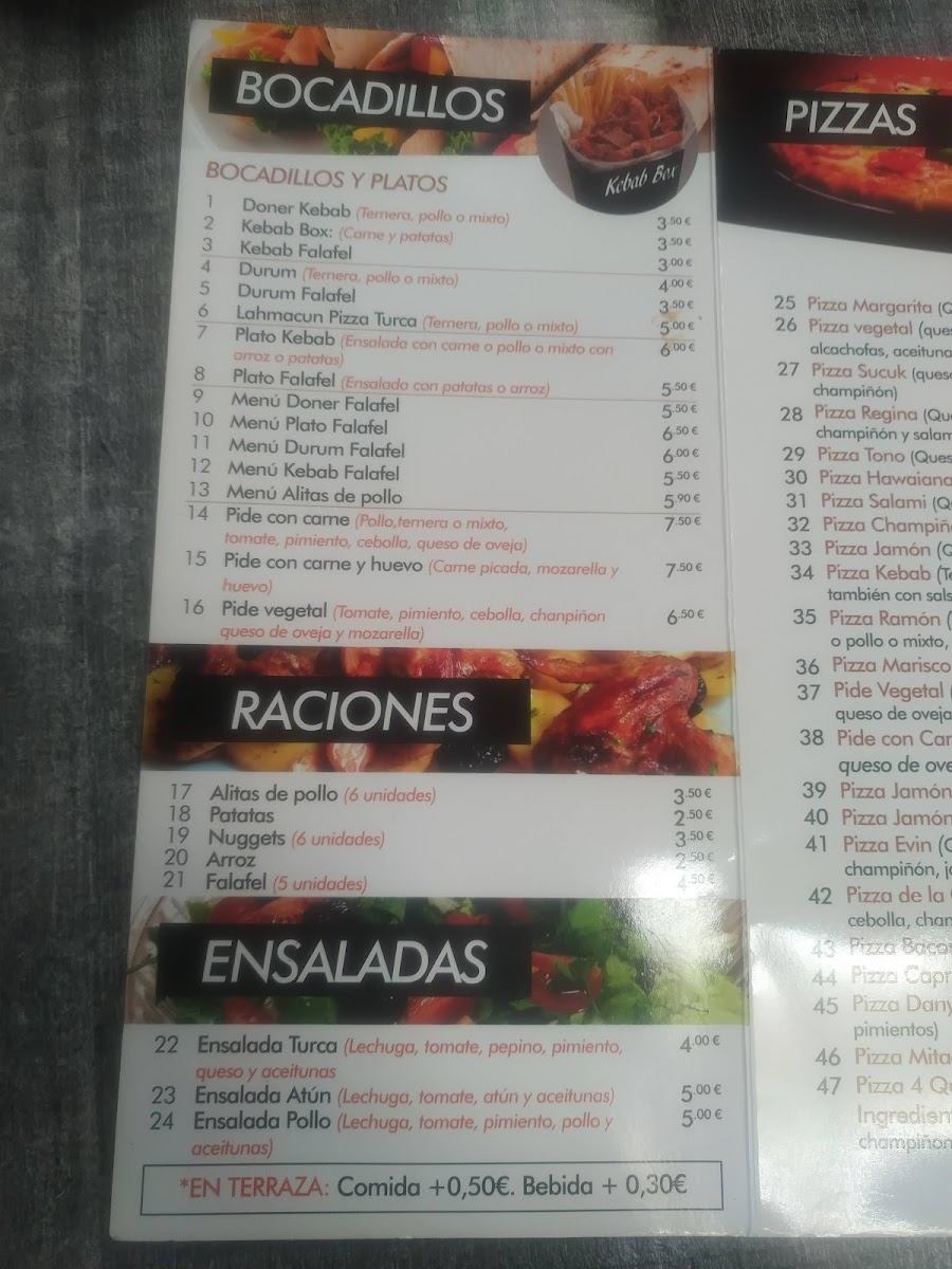 Complement your meal with a refreshing drink, such as a classic Coca-Cola or a glass of Rioja wine, all reasonably priced. Evin Kebap y Pizza offers both indoor and outdoor seating, catering to families and friends looking for a lively atmosphere.